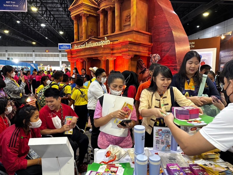 การจัดงานมหกรรมวิทยาศาสตร์และเทคโนโลยี ในปีนี้ ศูนย์ความรู้วิทยาศาสตร์และเทคโนโลยี (STKC) ได้นำเทคโนโลยี AR มาประยุกต์ใช้ในการจัดทำสื่อความรู้วิทยาศาสตร์และเทคโนโลยี เพื่อนำไปใช้ในการประกอบการเรียนการสอนในวิชาวิทยาศาสตร์และเทคโนโลยี โดยภายในบูธ STKC มีนักเรียน ครู ผู้ปกครอง นิสิตนักศึกษา และประชาชนผู้สนใจ จำนวนมากให้ความสนใจร่วมลงทะเบียน รับชุดสื่อการสอน AR เรื่อง ร่างกายของเรา และ ตารางธาตุ พร้อมกันนี้บุธ STKC ยังจัดการแสดงภาพยนตร์ 4 สหายผจญภัยโลกวิทยาศาสตร์ เดอะมูฟวี่ซีรี่ส์ ตอน ภารกิจเจ้าแห่งทะเลทราย ซึ่งเป็นการ์ตูนแอนิเมชั่น หนึ่งในหลายหลายตอน ของความรู้ด้านวิทยาศาสตร์และเทคโนโลยี โดยสามารถดูได้ที่ YouTube : STKC Society OFFICIAL และ TikTok : STKC Society นอกจากนั้น ศูนย์ความรู้วิทยาศาสตร์และเทคโนโลยีเทคโนโลยี ได้ส่งมอบ Box set ตารางธาตุให้กับครูวิทยาศาสตร์ผู้แทนโรงเรียนๆ ละ1 ชุด เพื่อนำไปใช้ในการประกอบการเรียนการสอนนักเรียนในห้องเรียน เพื่อสร้างความสนใจ ความตระหนักในด้านวิทยาศาสตร์และเทคโนโลยี ตามวัตถุประสงค์ของโครงการ