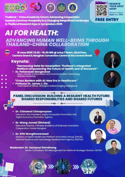 - หัวข้อการประชุม 085 | AI เพื่อสุขภาพ: การพัฒนาคุณภาพชีวิตผ่านความร่วมมือไทย–จีน