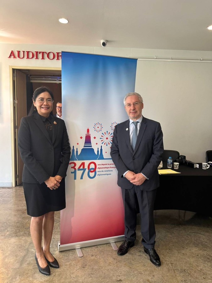ในโอกาสนี้ ผู้ตรวจราชการกระทรวง อว. ได้เน้นย้ำถึงความสัมพันธ์ที่แน่นแฟ้นบนพื้นฐานของความเสมอภาคและผลประโยชน์ร่วมกัน ระหว่าง อว. และรัฐบาลฝรั่งเศส ที่แสดงให้เห็นผ่านการลงนามในแถลงการณ์แสดงเจตจำนงระหว่างกระทรวงการอุดมศึกษา วิทยาศาสตร์ วิจัยและนวัตกรรมแห่งราชอาณาจักรไทย กับกระทรวงการอุดมศึกษาและการวิจัยแห่งสาธารณรัฐฝรั่งเศสว่าด้วยความร่วมมือด้านการอุดมศึกษา วิทยาศาสตร์ วิจัยและนวัตกรรม เมื่อเดือนตุลาคม 2566 ซึ่งถือเป็นกรอบการดำเนินความร่วมมือด้านการอุดมศึกษา วิทยาศาสตร์ เทคโนโลยีและนวัตกรรมระหว่างสถาบันอุดมศึกษาและหน่วยงานของทั้งสองประเทศ นอกจากนี้ยังกล่าวถึงโครงการวิจัยร่วมภายใต้ความร่วมมือด้านอุดมศึกษาและการวิจัยระหว่างไทย - ฝรั่งเศส (Franco - Thai Mobility Programme/PHC Siam) ซึ่งเป็นโครงการที่ อว. ร่วมกับรัฐบาลฝรั่งเศสโดยสถานเอกอัครราชทูตฝรั่งเศสประจำประเทศไทย ดำเนินโครงการมาตั้งแต่ปี พ.ศ. 2544 เพื่อสนับสนุนความร่วมมือทางวิชาการระหว่างสองประเทศผ่านการแลกเปลี่ยนนักวิจัยทั้งรุ่นอาวุโสและรุ่นเยาว์ระหว่างกัน ทั้งนี้ได้สนับสนุนโครงการวิจัยร่วมระหว่างไทยและฝรั่งเศสไปแล้วทั้งสิ้น 227 โครงการ ช่วยสร้างเครือข่ายความร่วมมือระหว่างสถาบันอุดมศึกษาไทยและฝรั่งเศสที่เข้มแข็งและยั่งยืน ส่งเสริมการถ่ายทอดองค์ความรู้และเทคโนโลยี พร้อมยกระดับศักยภาพนักวิจัยทั้งสองประเทศ