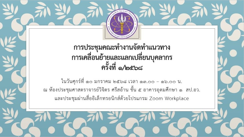 เมื่อวันที่ 10 มกราคม 2568 ที่ผ่านมา กลุ่มส่งเสริมและพัฒนาการใช้ประโยชน์จากทุนทางปัญญา โดยกองส่งเสริมและพัฒนาทุนทางปัญญา ได้มีการจัดประชุมคณะทำงานจัดทำแนวทางการเคลื่อนย้ายและแลกเปลี่ยนบุคลากร ครั้งที่ 1/2568 โดยได้รับเกียรติจาก "ศาสตราจารย์พิเศษ ดร.ทศพร ศิริสัมพันธ์" เป็นประธานฯ และมีผู้แทนจากหน่วยงานต่างๆ ภายในกระทรวงการอุดมศึกษา วิทยาศาสตร์ วิจัย และนวัตกรรม และสถาบันอุดมศึกษา ร่วมเป็นคณะทำงาน เพื่อหารือแนวทางการขับเคลื่อนการจัดทำแนวทางการส่งเสริมการเคลื่อนย้ายและแลกเปลี่ยนบุคลากรในสถาบันอุดมศึกษาไปยังหน่วยงานในสังกัดกระทรวงการอุดมศึกษา วิทยาศาสตร์ วิจัยและนวัตกรรม สถาบันอุดมศึกษานอกสังกัดกระทรวงการอุดมศึกษา วิทยาศาสตร์ วิจัย และนวัตกรรม หน่วยงานภาคเอกชน และองค์กรปกครองส่วนท้องถิ่น (อปท.) ในอนาคต