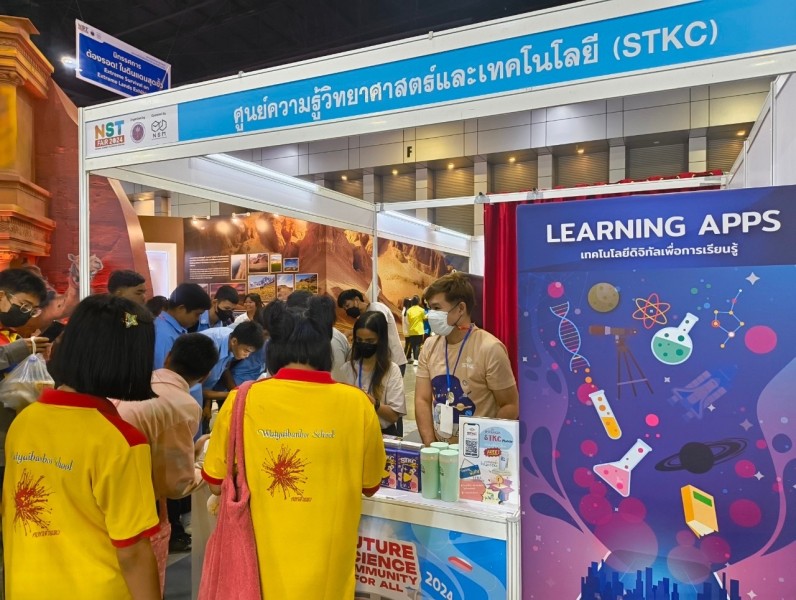 การจัดงานมหกรรมวิทยาศาสตร์และเทคโนโลยี ในปีนี้ ศูนย์ความรู้วิทยาศาสตร์และเทคโนโลยี (STKC) ได้นำเทคโนโลยี AR มาประยุกต์ใช้ในการจัดทำสื่อความรู้วิทยาศาสตร์และเทคโนโลยี เพื่อนำไปใช้ในการประกอบการเรียนการสอนในวิชาวิทยาศาสตร์และเทคโนโลยี โดยภายในบูธ STKC มีนักเรียน ครู ผู้ปกครอง นิสิตนักศึกษา และประชาชนผู้สนใจ จำนวนมากให้ความสนใจร่วมลงทะเบียน รับชุดสื่อการสอน AR เรื่อง ร่างกายของเรา และ ตารางธาตุ พร้อมกันนี้บุธ STKC ยังจัดการแสดงภาพยนตร์ 4 สหายผจญภัยโลกวิทยาศาสตร์ เดอะมูฟวี่ซีรี่ส์ ตอน ภารกิจเจ้าแห่งทะเลทราย ซึ่งเป็นการ์ตูนแอนิเมชั่น หนึ่งในหลายหลายตอน ของความรู้ด้านวิทยาศาสตร์และเทคโนโลยี โดยสามารถดูได้ที่ YouTube : STKC Society OFFICIAL และ TikTok : STKC Society นอกจากนั้น ศูนย์ความรู้วิทยาศาสตร์และเทคโนโลยีเทคโนโลยี ได้ส่งมอบ Box set ตารางธาตุให้กับครูวิทยาศาสตร์ผู้แทนโรงเรียนๆ ละ1 ชุด เพื่อนำไปใช้ในการประกอบการเรียนการสอนนักเรียนในห้องเรียน เพื่อสร้างความสนใจ ความตระหนักในด้านวิทยาศาสตร์และเทคโนโลยี ตามวัตถุประสงค์ของโครงการ